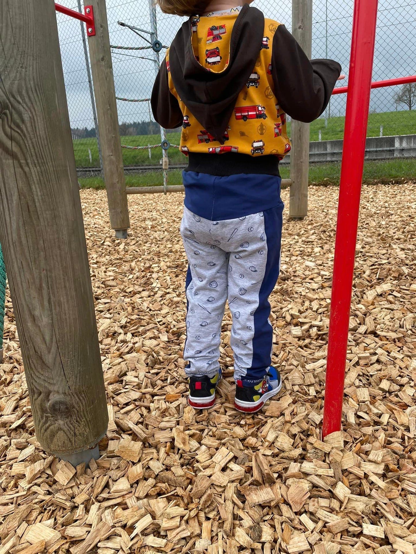 - Der untere Hosensaum kann toll gekrempelt werden, wir haben die Länge ein bisschen großzügiger gemacht, dann habt ihr länger was von der Hose